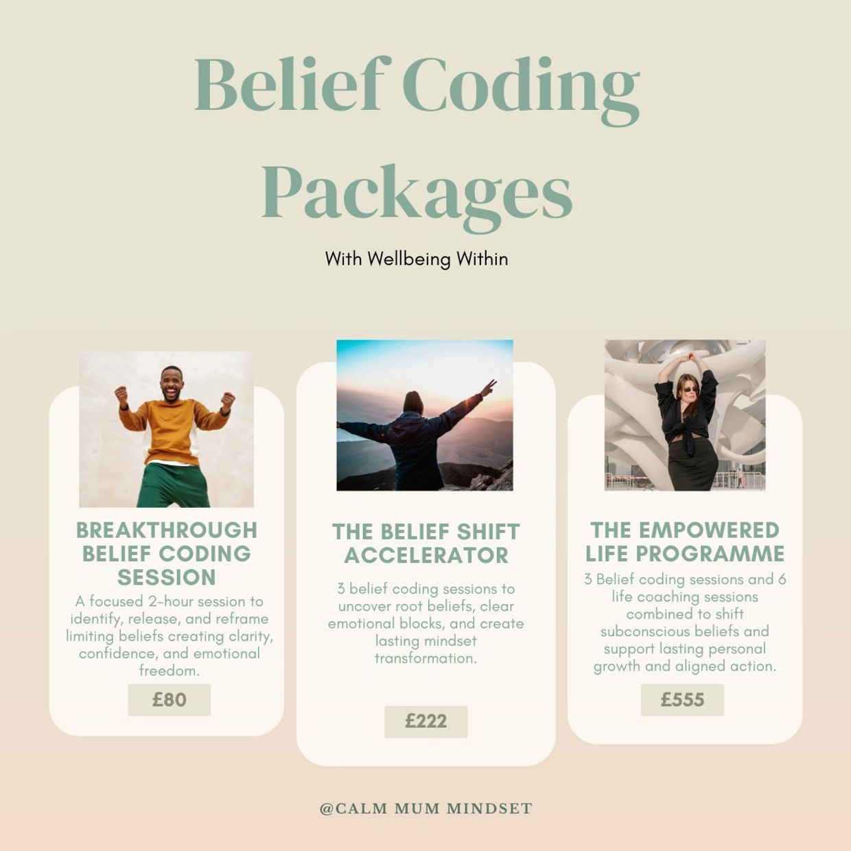 At Wellbeing Within, we know that your subconscious beliefs are ruling your life. Some may be limiting your potential or keeping you stuck. You can change these beliefs by a process called Belief Coding® That's why I have designed these programs to suit your needs. I gently guide people through a session to change limiting beliefs to empowering ones. Choose the package that suits you.